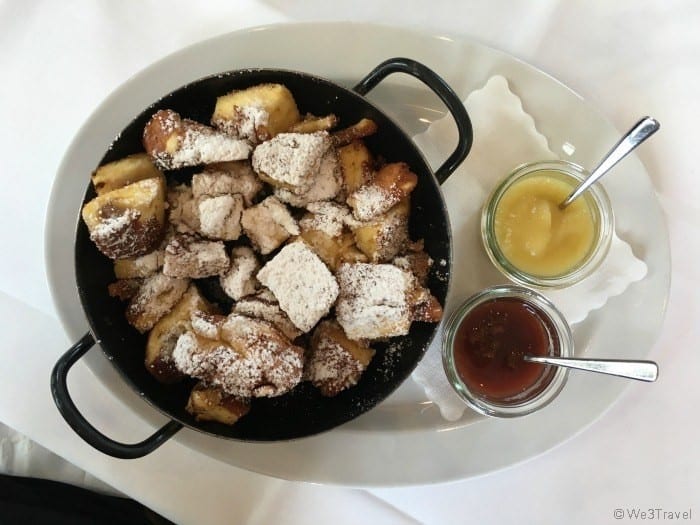 Cafe Mozart’s kaiserschmarrn, a torn pancake with stewed plums, is delicious. We first tried this treat in Rehoboth Beach, Delaware of all places and it was so fun to try it in Austria where it was invented. I also loved their dish with roasted bread dumplings and eggs and green salad.
