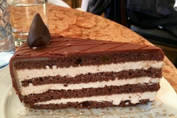 Before you go, there are a few things that you should know. First, not many coffee houses accept reservations so to avoid a line, plan to arrive before noon. Next, many (such as Cafe Diglas) are cash only — so be prepared with Euro. In many coffee houses, when you want to order a pastry, you will go up to the pastry counter and make your selection. They will provide a little slip with a number on it that you leave on the table for your server, who will then bring you your selection. Also, expect each coffee to be served with a small glass of water.