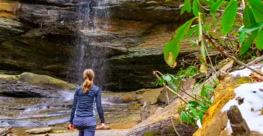 Moore Cove Falls enchants with its delicate 50-foot cascade, inviting visitors to walk behind the curtain of water. The shaded trail leading to the falls is family-friendly and accessible.