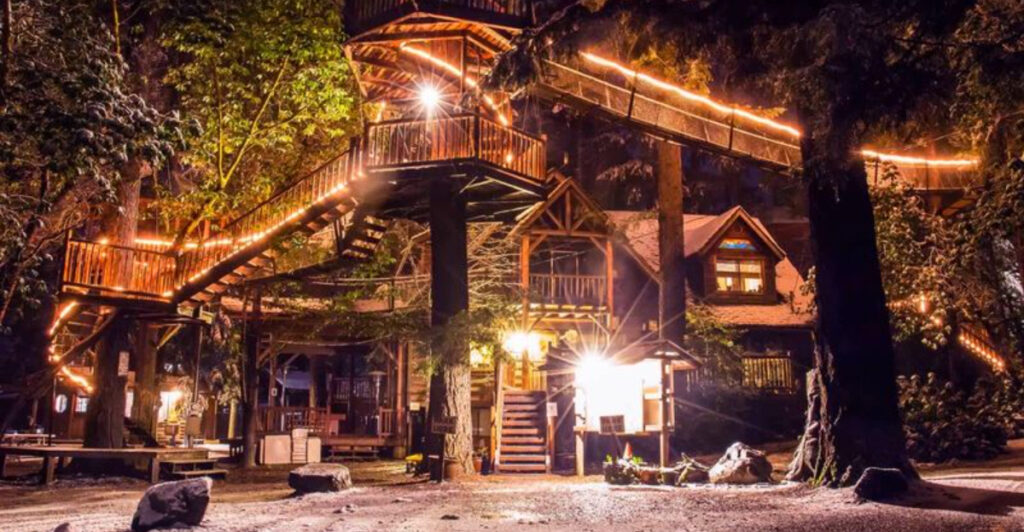 Childhood dreams come alive at Out’n’About Treehouse Resort, where handcrafted treehouses perch high among towering Douglas firs and oak trees. Each unique structure features comfortable beds, electricity, and breathtaking forest views.