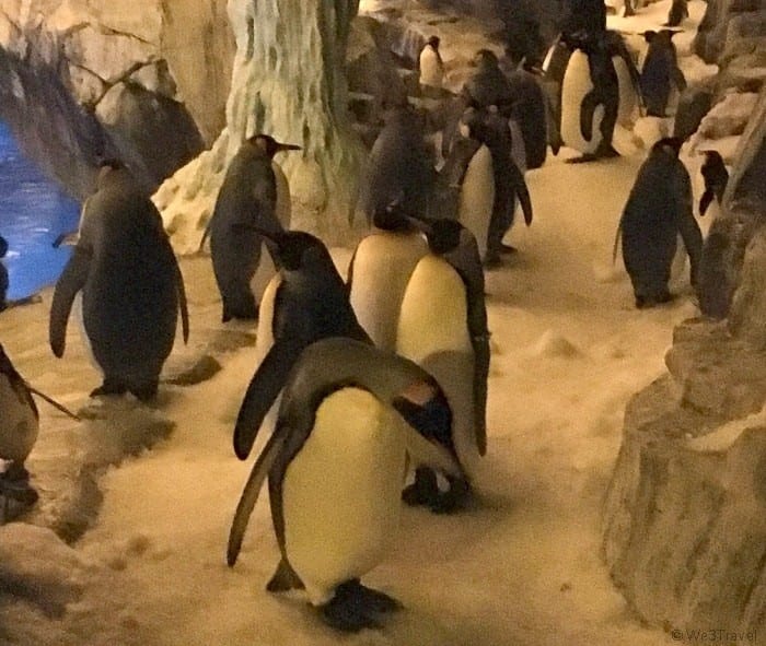 We had a chance to go behind the scenes at Antarctica: Emperor of the Penguin at SeaWorld Orlando for a 45 minute tour to learn all about the penguins housed there including how they breed, what they eat and how they live. After seeing where the keepers work, we stepped into the backdoor of the exhibit to meet the Rock Hopper, Chinstrap, Gentoo, King, and Magellanic penguins living there.
