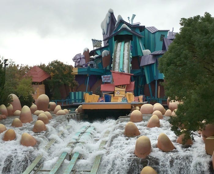 That seems obvious right? But on rides like Popeye and Bluto’s Bilge-Rat Barges you will get soaked and you have to wear shoes. So even if you just bring a cheap pair of flip flops in your bag, switch out your shoes before the water rides. Oh, and there are “people dryers” if you really need them.