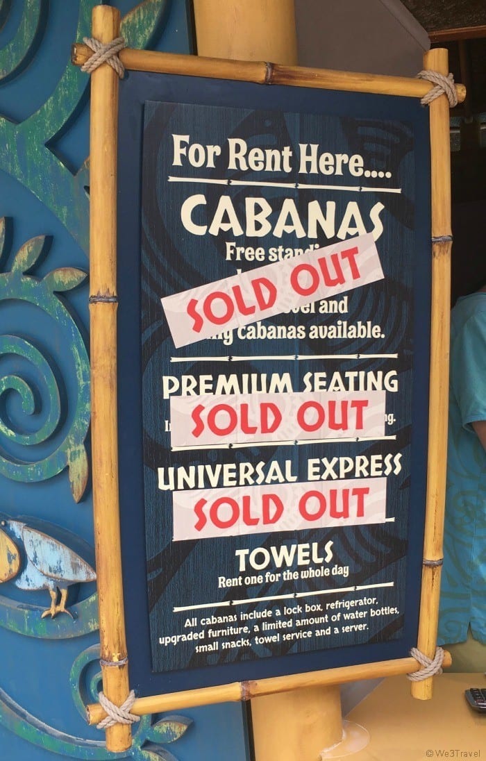 I talked about this in my Volcano Bay tips post, but if you want to reserve chairs or a cabana at the waterpark, you’ll need to do this a minimum of two weeks in advance as they sell out quickly.