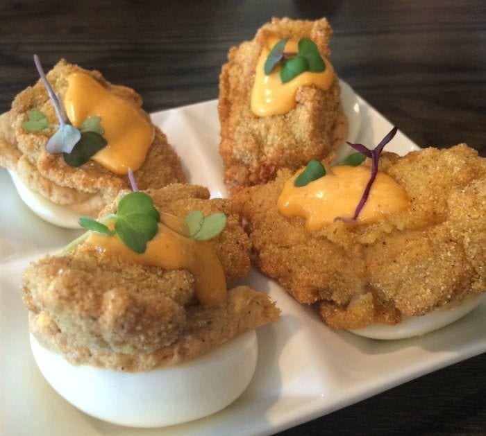 If the cool modern design of the interior doesn’t grab you, the food certainly will. My cornmeal-dusted soft-shell crab with poached egg, Canadian bacon, and creole hollandaise over an English muffin was so unique. The crispness of the crab with the softness of the egg and the saltiness of the bacon was a perfect match. I also couldn’t get enough of the “Deviled on the Bayou” starter featuring cornmeal-crusted oysters on deviled eggs with Sriracha.
