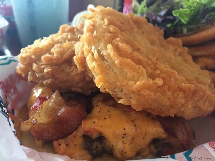 While in Gulf Shores, I simply have to go and have a Cheeseburger in Paradise and while LuLu’s offers plenty of options, I can’t resist their specialty — the pa-menna burger. This burger is topped with fried green tomatoes, pa-menna cheese and bacon. The cheese has a garlicky flavor to add to the saltiness of the bacon and juiciness of the burger — paradise!