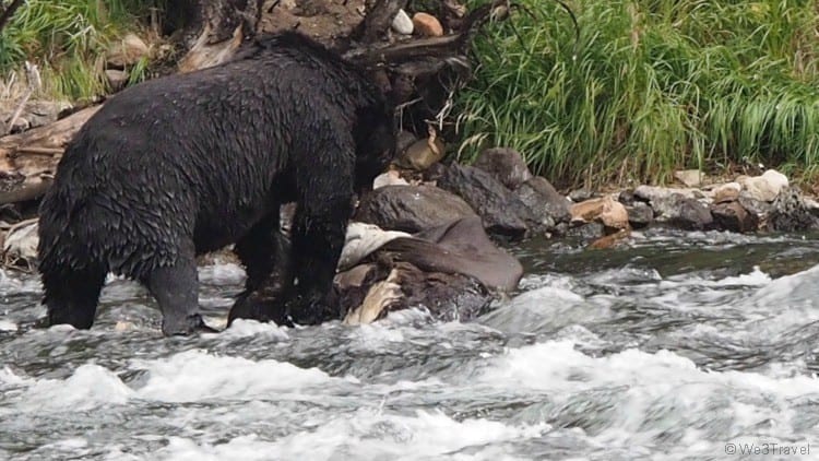 We were so lucky to spend some time watching a grizzly bear chow down on a dead bison in the river. Having binoculars brought the experience up close (closer than we would want to be in real life that is for sure!)